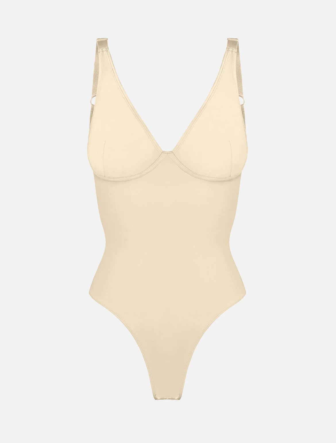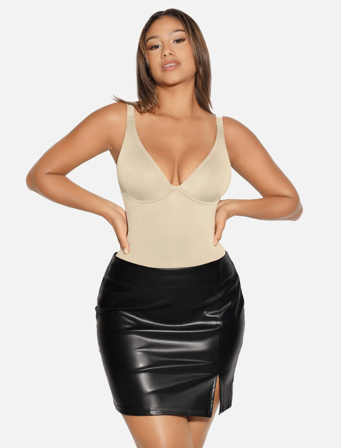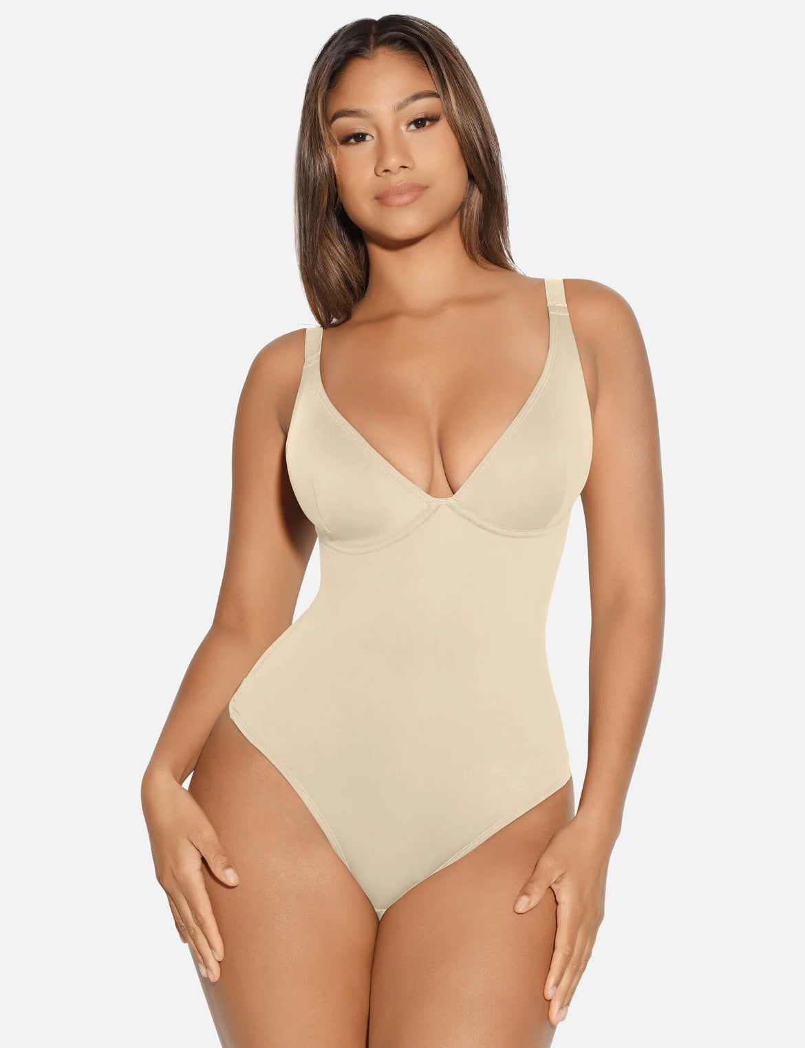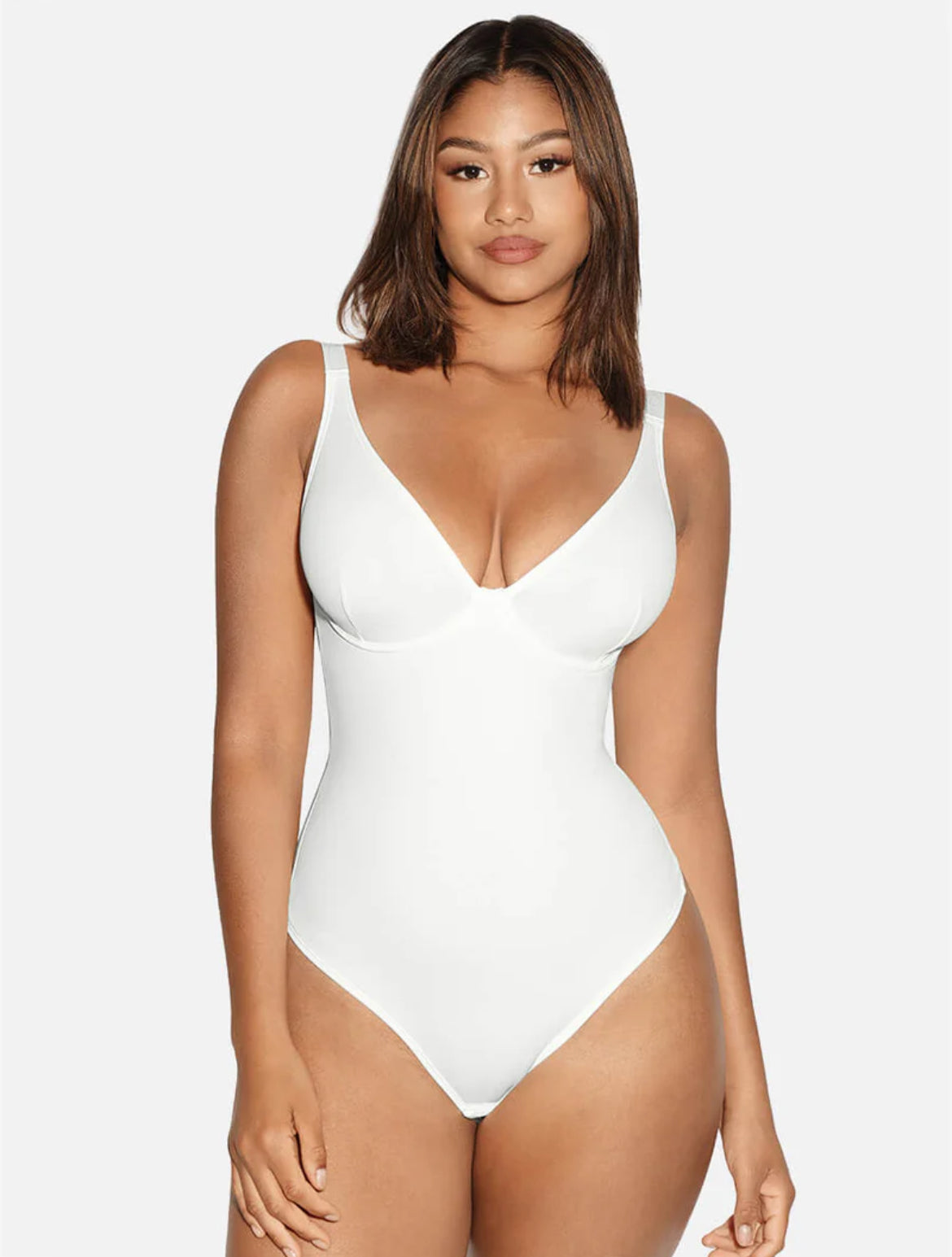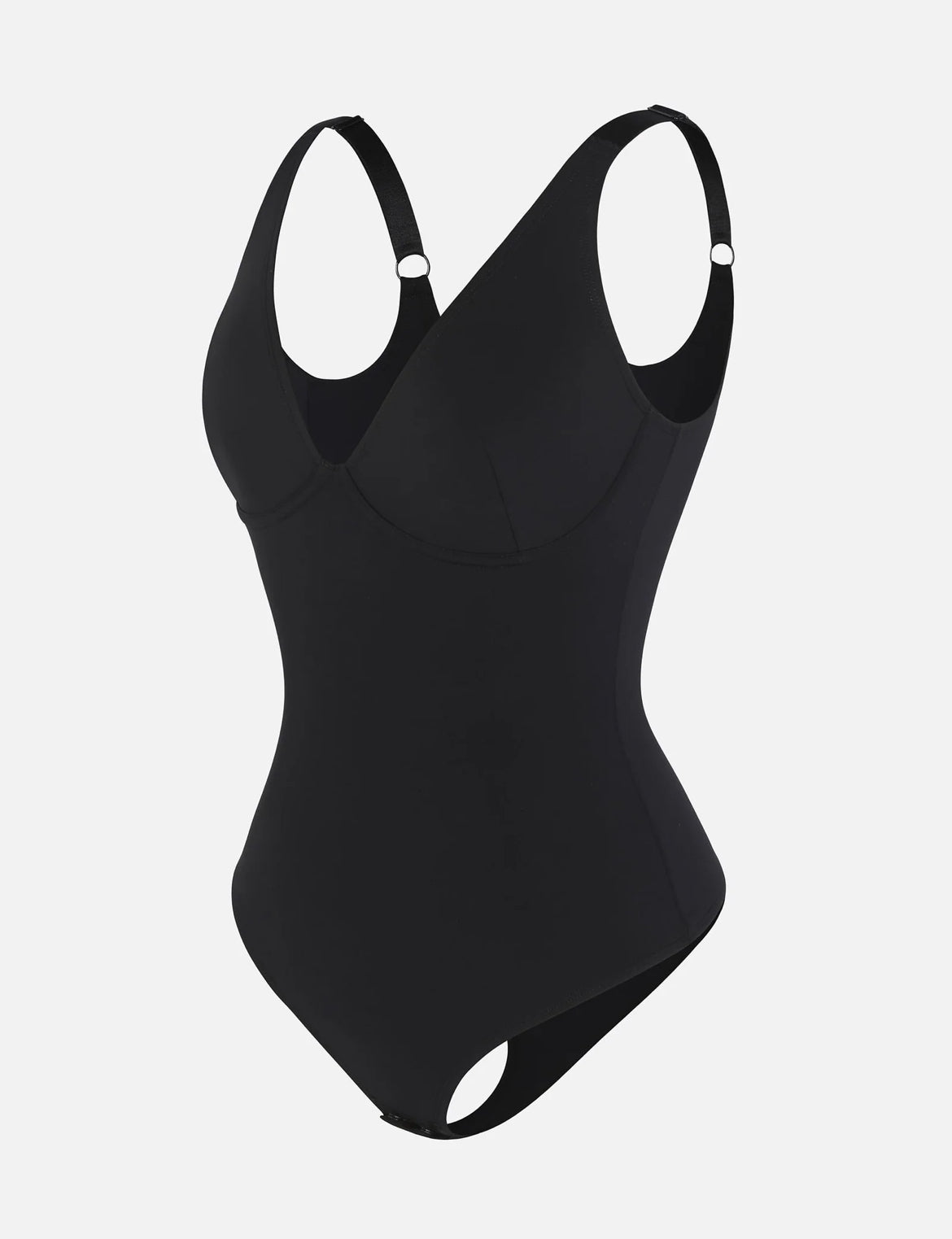 The bodysuit’s shape beautifully defines the bust, highlights the neckline, and brings harmony to the feminine silhouette. - Gentle tummy & back shaping